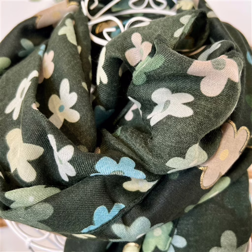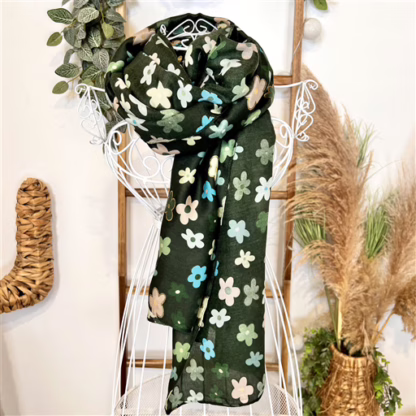 Y485 – Foulard imprimé fleurs (vert sapin)