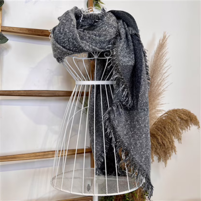 Son format généreux permet de la porter de multiples façons : enroulée autour du cou pour un look cosy, ou posée sur les épaules comme un châle. Les bords effilochés lui confèrent un style moderne et décontracté, parfait pour la saison.