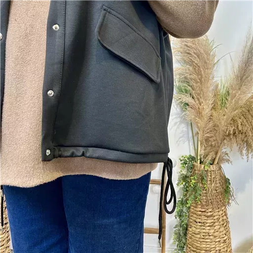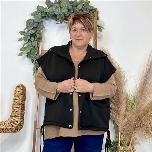 Élégante et contemporaine, cette veste signée C Mélodie de fabrication italienne, allie style et savoir-faire italien. Conçue sans manches, elle se distingue par sa coupe épurée et son allure moderne. Le col plat s’orne d’une fermeture pratique par boutons-pressions. Au bas de la veste, un cordon réglable permet d’ajuster la silhouette selon vos envies, offrant une touche à la fois fonctionnelle et raffinée.