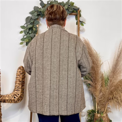 Veste bimatière Mina Rosa, de fabrication italienne au design mi-long et original. La partie avant est en tissu texturé pied de poule, tandis que la doublure est en imprimé animalier. Elle se ferme à l’aide d’un bouton, 2 poches et dispose d’une broche « Soleil » au niveau du col. ⚠️ Modèle contenant de la laine. Ce modèle est proposée en taille unique, il conviendra jusqu’au 44/46 en fonction de votre style et de votre morphologie. Facile à porter sur un jean Voggo à 18.90€.