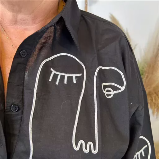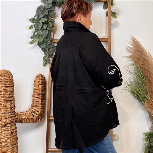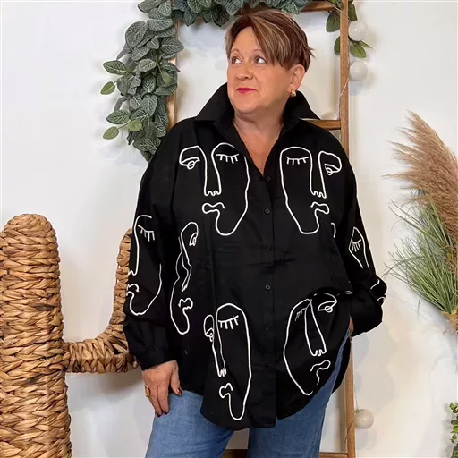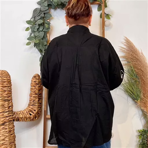 Chemisier ample qui conviendra du 42 au 50 en fonction de votre morphologie et la manière dont vous souhaitez la porter.