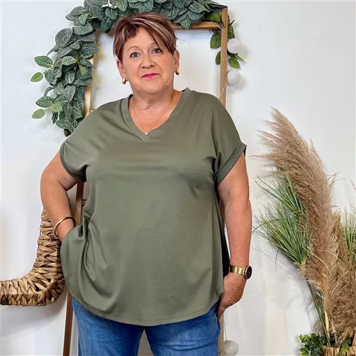 Laissez-vous séduire par ce t-shirt si facile à porter convenant jusqu’à la taille 46/48. Elle respire la simplicité. Sa matière légère, sa coupe droite et son encolure en V, se glissera sous toutes vos vestes et gilets.