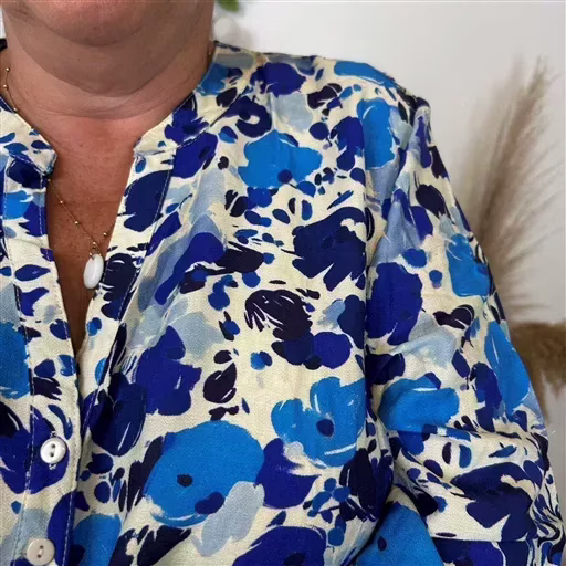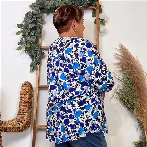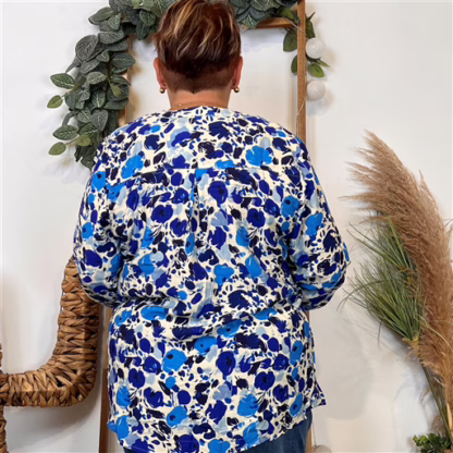 Z122- Blouse « Christy » Fleurettes (T44-T52) (bleu royal)