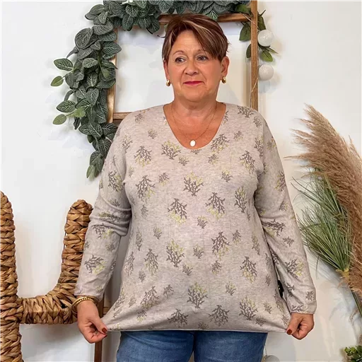 Z128. Pull imprimé « Coraux » (GT) 🇮🇹 (beige)
