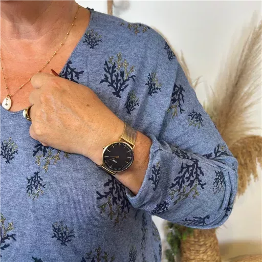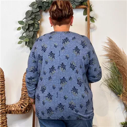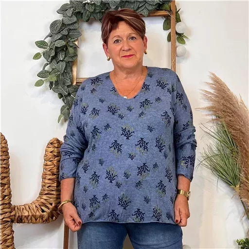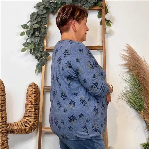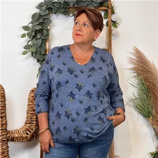 Pull imprimé proposé en taille unique, contenant de la laine. Touché duveteux convenant du 40/42 au 46/48 en fonction des différentes morphologies