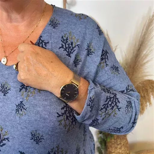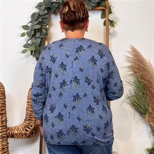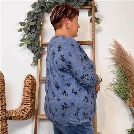 Z128. Pull imprimé « Coraux » (GT) 🇮🇹 (bleu jeans)