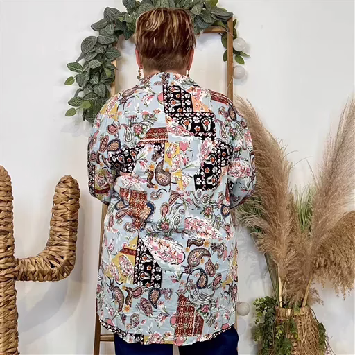 Taille 2= taille 44, largeur poitrine 112 cm, hanches 112 cm, bras 40 cm. Longueur 76 cm.