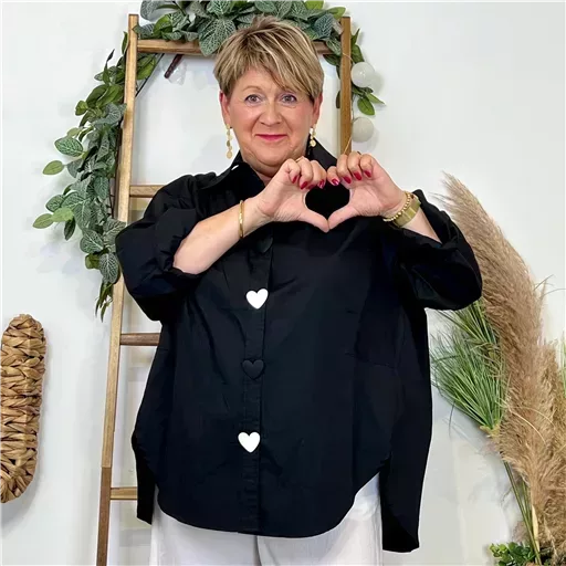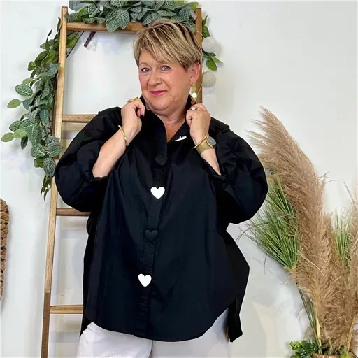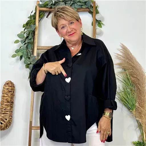 Z118- Chemise unie Coeurs & Tags – Mina Rosa (noir)