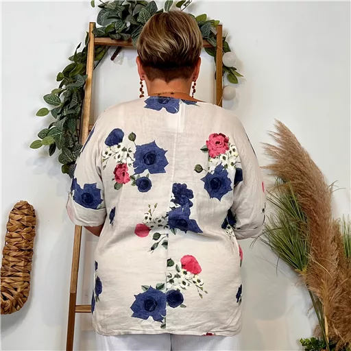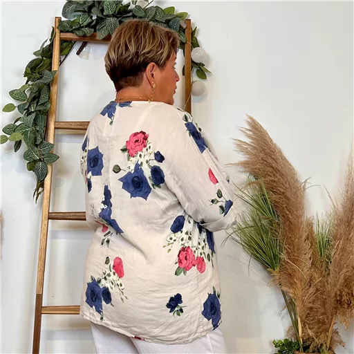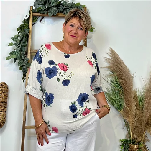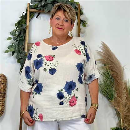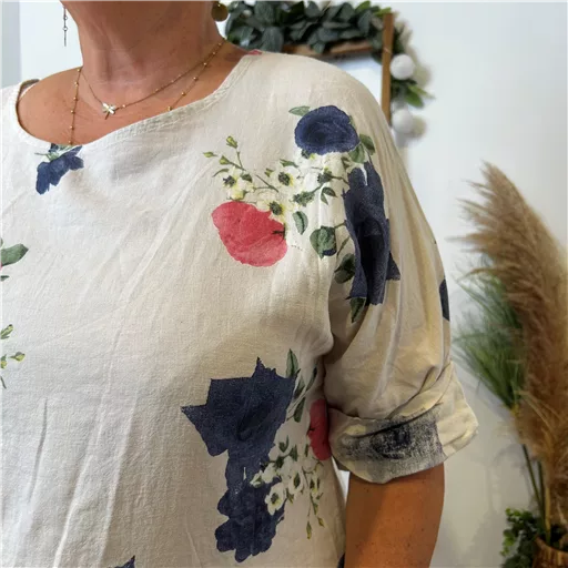 Z151- Tunique coton « FLEURS » (Gt) 🇮🇹 (beige)