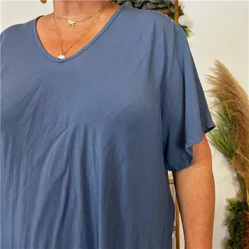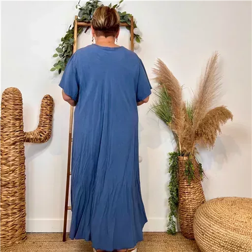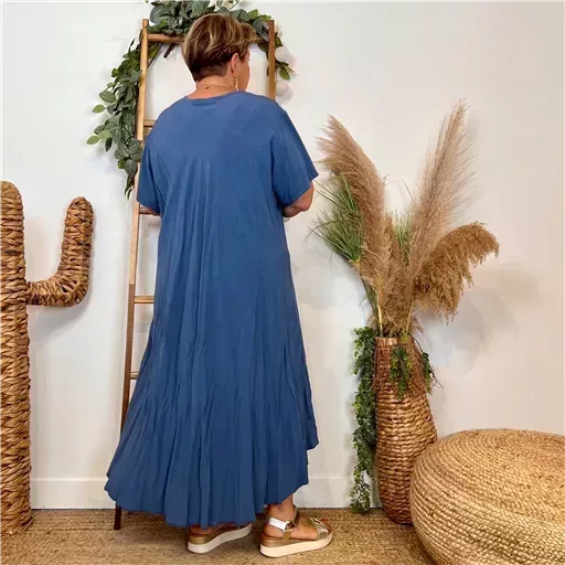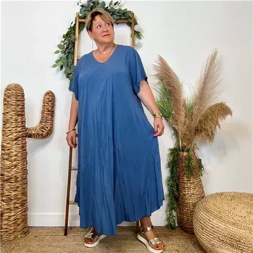 Robe casual ample à manches courtes, col V coupe trapèze, couleur unie. Robe loose à manches courtes grande taille pour femmes.
