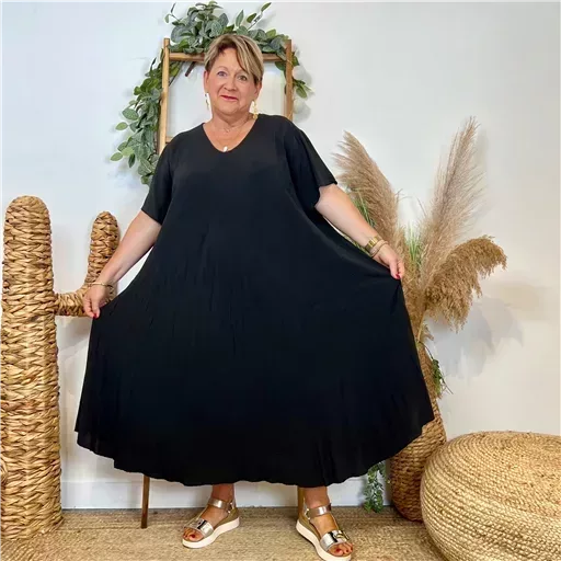 Robe casual ample à manches courtes, col V coupe trapèze, couleur unie. Robe loose à manches courtes grande taille pour femmes.