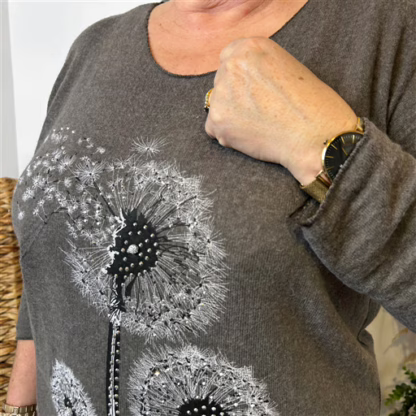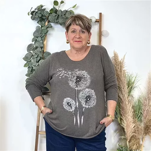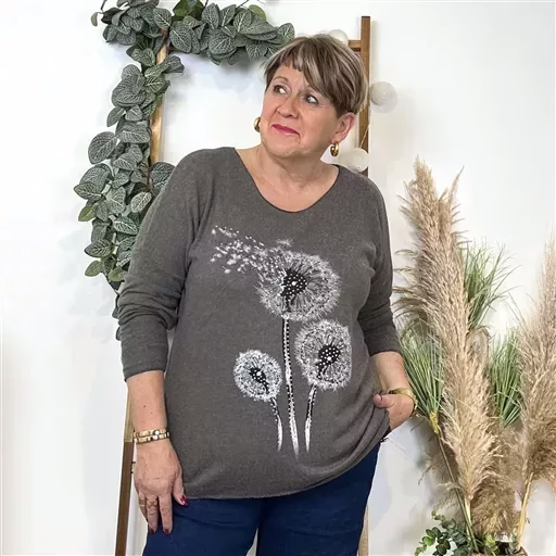 Ce pull fond uni de fabrication italienne pour femme est proposé avec son imprimé pissenlits sur le devant. Proposé en taille unique il conviendra du 42 au 48 en fonction des différentes morphologies. Ce pull coupe droite est confectionné en maille un tissu doux et chaud sans être trop épais rendant ce dernier idéal pour les saisons fraîches. Il présente un col V, et des finitions cousues. Le Must Have de cette année 2025.