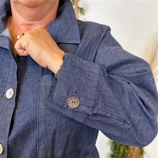 Cette chemise courte en denim est une pièce unique et élégante qui ajoutera une touche de personnalité à votre garde-robe. C’est un choix parfait pour un look décontracté ou chic, et elle est sûre de vous faire remarquer. Veste avec des finitions cousues et d’autres détails uniques. Veste élégante et unique 2 poches plaquée au niveau de la poitrine. Coupe flatteuse et confortable. De fabrication italienne, Finitions de haute qualité.