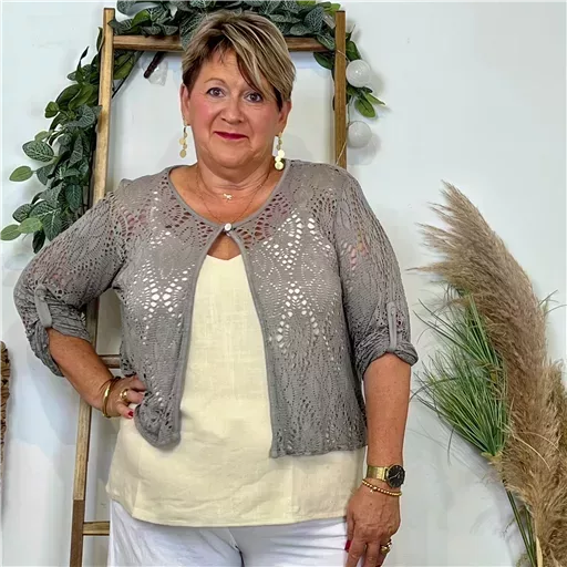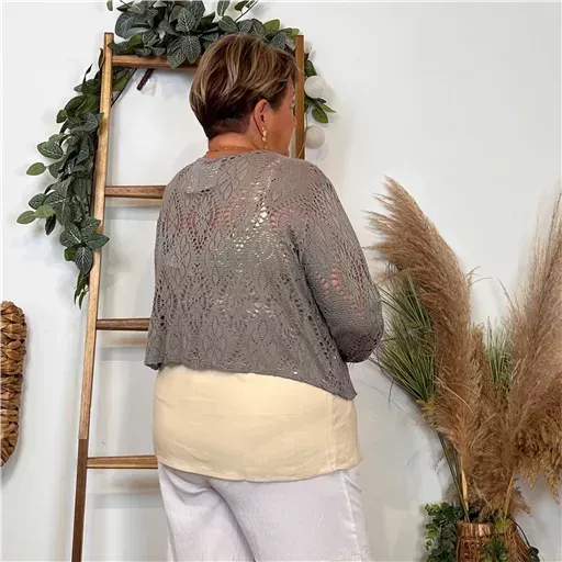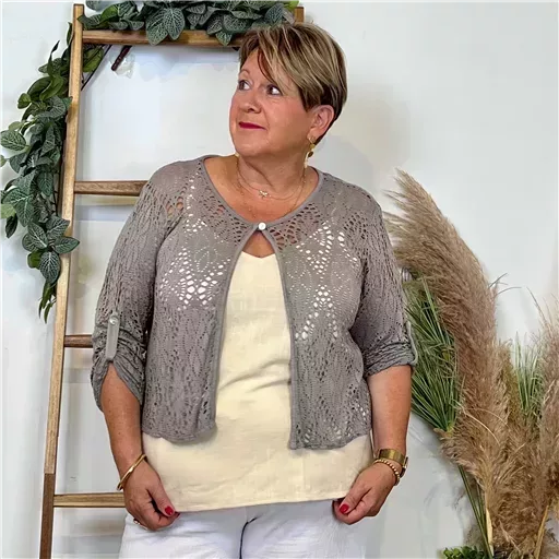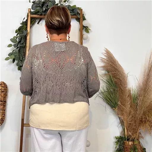 Z132- Gilet court Ajouré 🇮🇹 (taupe)