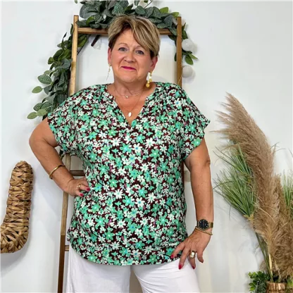 Z747- Top Christy Fleuri (T44-T52) 💐 (vert)