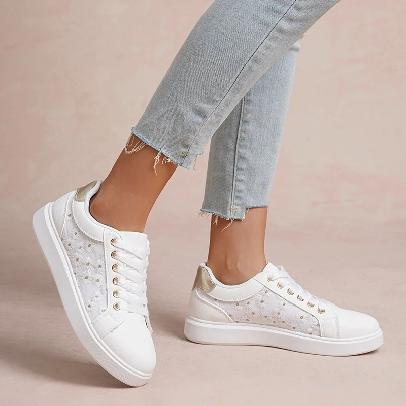 R262- Baskets femme blanches à fleurs